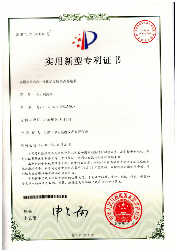 一种甲醇转化器合成多点热电偶