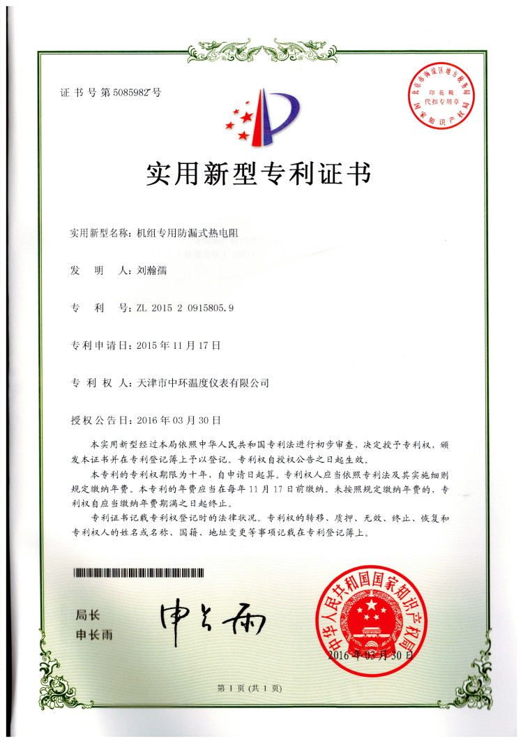 机组专用式防漏式热电阻