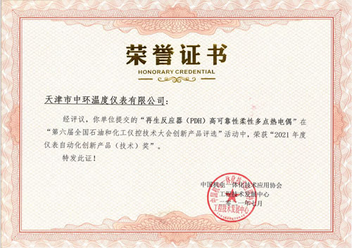 天津市中环温度仪表有限公司始建于1993年8月,现坐落于天津市东丽开发区,占地面积20000平方米,标准化厂房17600平方米,注册资金5000万元人民币。是专业生产各类特殊温度传感器的高新技术企业,研制包括高压多点柔性热电偶、气化炉高温热电偶在内的用于苛刻工况的高可靠性热电偶、热电阻产品,已服务于UOP、DAVY、BASF、LUMMUS、TOPSOE等国外的工艺包中的温度测量。尤其在各类反应器的温度计中,更是具有众多业绩。如丙烯酸、丙烯酸酯、顺酐、苯酐、乙二醇、合成气体乙醇、己内酰胺、BDO、丁辛醇、甲烷化、丙烷脱氢、异丁烷脱氢、合成氨、苯加氢、催化重整、航煤/渣油/蜡油/汽柴油加氢反应器等。并且在特殊/苛刻的工况中,如GE气化炉、SHELL气化炉、航天炉、晋华炉、克林炉等,均取得了成功的应用,开车运行良好。